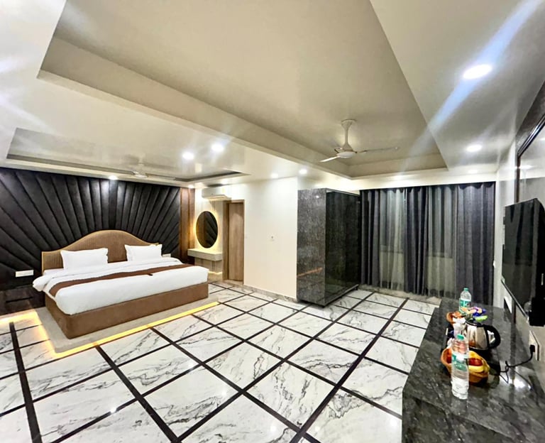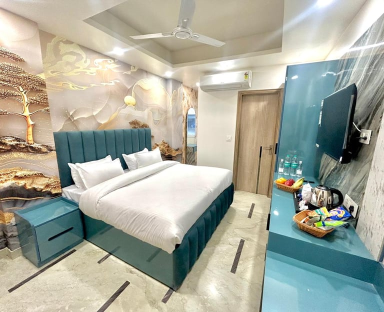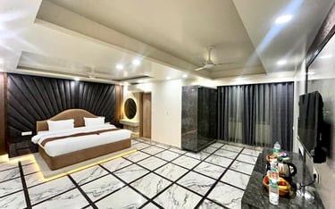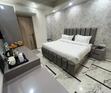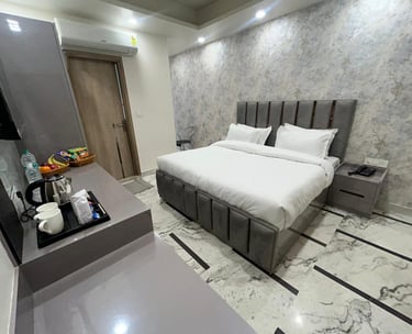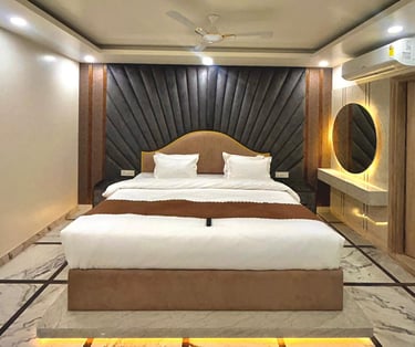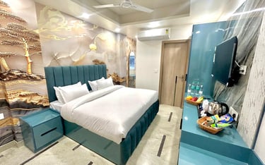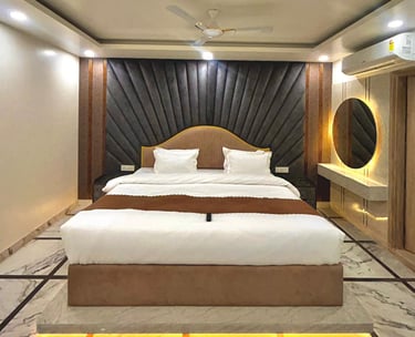 Experience luxury in our Royal Deluxe Room featuring modern amenities, a private washroom, and a comfortable atmosphere for a perfect stay in Karol Bagh, Delhi.
